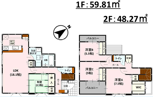 建物面積 108.08㎡ 駐車場 あり 普通:2台