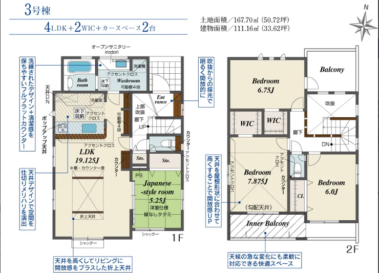 | 建物面積 | 111.16㎡ | 駐車場 | あり 普通:2台 軽:1台 |